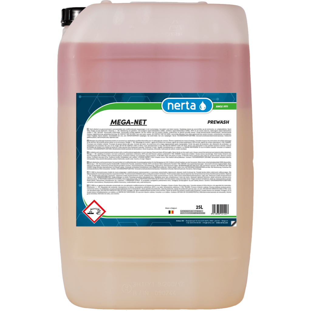 Ennen pesuaineen käyttöä, on tärkeää lukea tarkasti tekniset ja käyttöturvallisuustiedotteet! Nerta Mega-Net esipesutiiviste on tarjolla eri kokoisissa pakkauksissa: 20 l, mahdollistaen juuri sinulle sopivan määrän valitsemisen. Valmistettu Belgiassa, tämä esipesuaine on huippu ratkaisu jokaiseen pesuun.